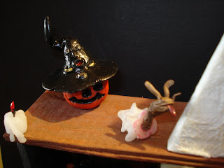 Como podéis ver el mueble del salón de Hagatha esta todo repleto con alusiones a Halloween.